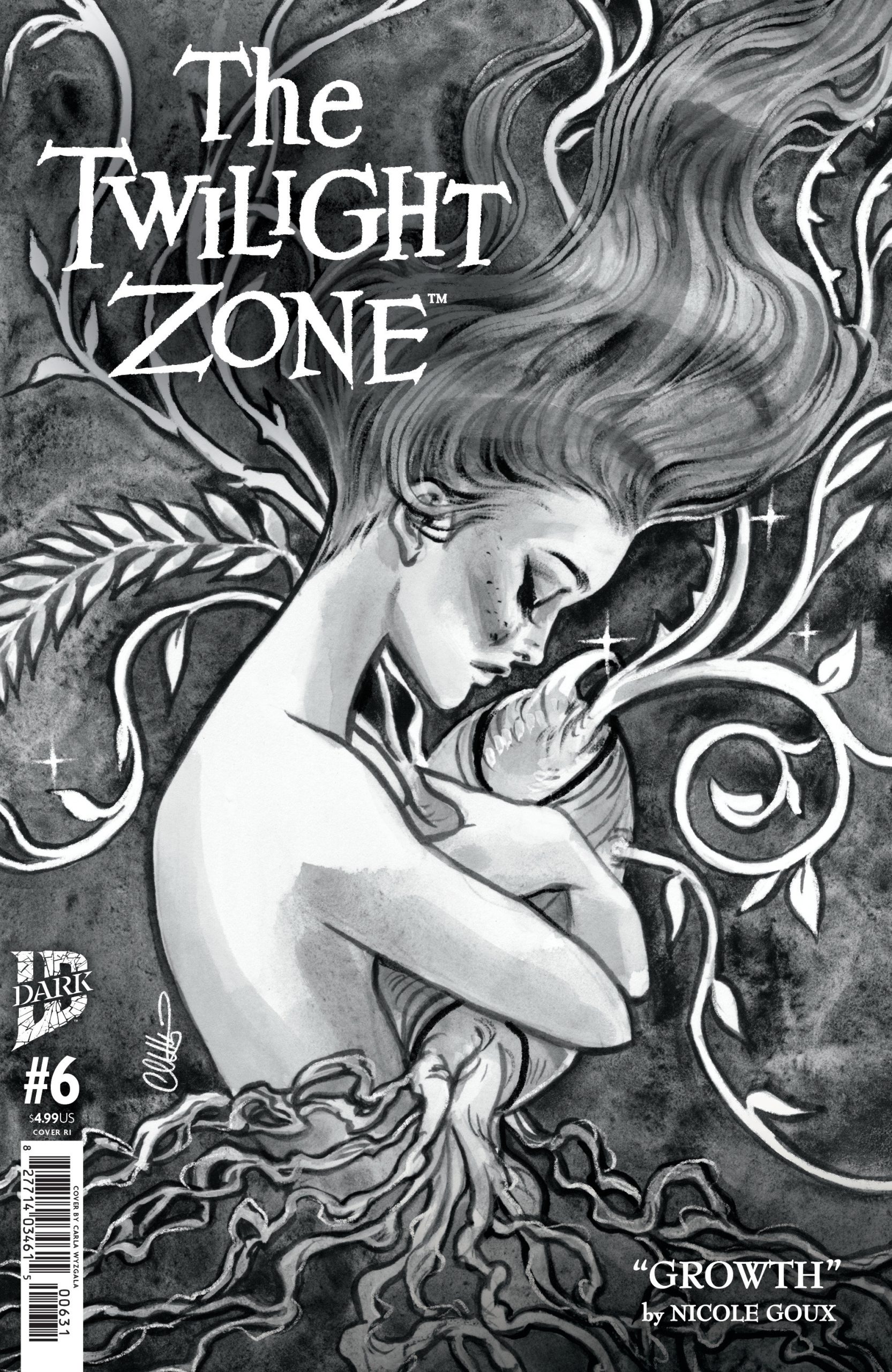 The Twilight Zone anthology returns with a new batch of standalone issues! Comic book greats bring us fresh stories in chilling black and white, just like the original television show.This issue: Piper can’t take care of herself. She barely eats, and her apartment is a mess. In a last desperate attempt to quick-fix her life, she decides to order a food delivery service. But her first delivery includes an unexpected arrival: an unsettlingly baby-shaped vegetable. Its pudgy plant hands and feet may be too cute to eat, but Piper is about to learn that caring for another is far more complicated than caring for yourself. Especially if you love the other more than yourself…Nicole Goux (Shadow of Batgirl, Fuck Off Squad, Forest Hills Bootleg Society) welcomes us back to the Twilight Zone. Get cozy, dear readers. We’re just getting started…